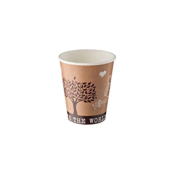 Bicchieri realizzati in poliaccoppiato Carta e PE (superiore al 5%) per cui smaltito nell'indifferenziata (secco). Prodotto idoneo al contatto con bevande calde e fredde. Il prodotto non può essere utilizzato unitamente all'alimento nel forno tradizionale e forno a microonde.• Bicchiere: Ø cm.8x9h. 240ml.• Peso unitario 7.5gr• Colore: marrone + bianco