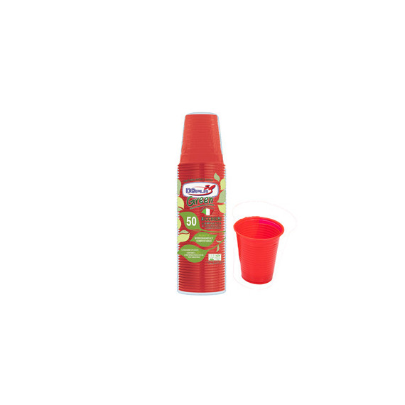 Confezione da 50 bicchieri compostabili da 200ml. Colore: rosso.