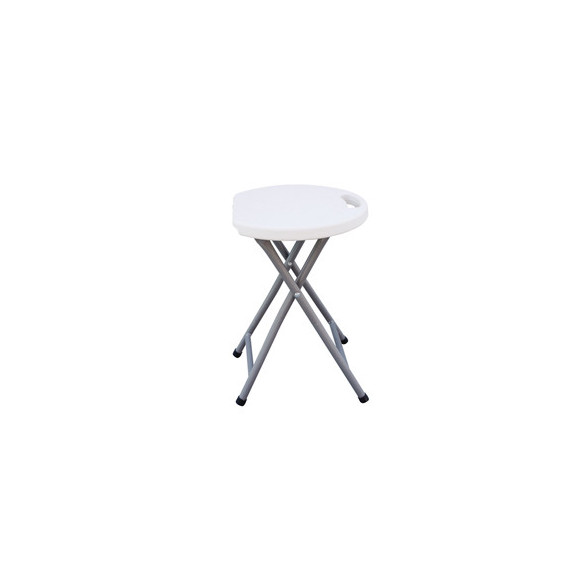 Sgabello HORECA pieghevole di colore bianco. Struttura in acciaio verniciato con vernici epossidiche color grigio e top in HDPE di colore bianco pieghevole. Dimensioni: H44 x P30 x L30cm - 1,7kg.Articolo destinato ad esclusivo uso domestico. Non adatto ad uso pubblico.