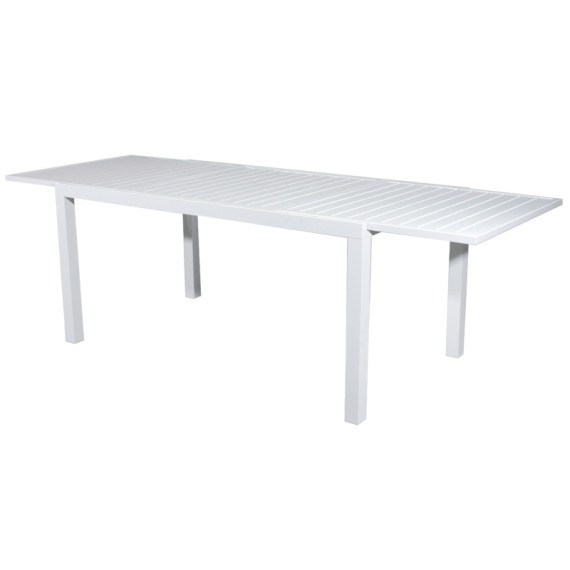 Tavolo allungabile in alluminio verniciato con top a doghe. Apertura UP/DOWN. Articolo da montare. Abbinabile alle sedute sardegna: cod 105628 105629 Dimensioni: 160/240 x 100 x 74cm