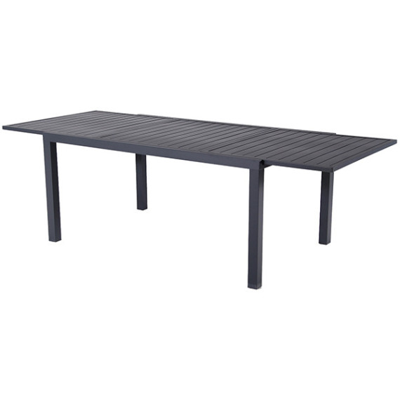 Tavolo allungabile in alluminio verniciato con top a doghe. Apertura UP/DOWN. Articolo da montare. Abbinabile alle sedute sardegna: cod 105628 105629 Dimensioni: 160/240 x 100 x 74cm