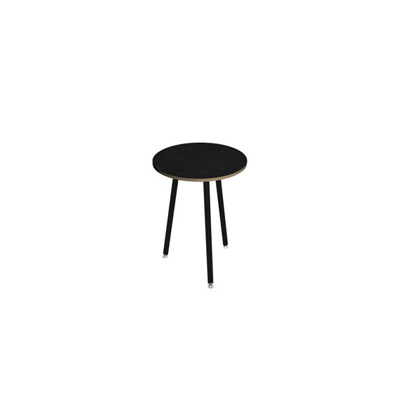 Linea di arredo operativo dal design innovativo e dinamico caratterizzata dalle gambe in metallo cilindriche inclinate delle scrivanie e dei tavoli rotondi. Robusti piani in melaminico sp. 22 mm con bordo antishock resistente agli urti in ABS 3 mm. Gambe in metallo verniciato nero (diam. 50 mm) complete di piedini livellabili in altezza.Materiale bilaminato nobilitato melaminico spessore 22 mm conforme norme UNI e EN classe E1. Tavoli alti di varie dimensioni ideali per garantire un pratico e veloce appoggio per riunioni, pause pranzo o caffè, briefing informali. Piani antigraffio e antiriflesso.Tavoli tondi alti : Ø80xH105cm con 3 gambe in metallo verniciato nero.Le gambe sono fissate al piano con robuste piastre in metallo.
