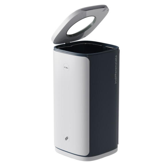 Il design elegante e moderno permette la sua collocazione in ogni tipo di ambiente. Ideale per creare isole ecologiche in ufficio e negli spazi pubblici. Due aree circolari, presenti ai lati della scocca esterna, contengono dei magneti per far agganciare facilmente i vari moduli. Contenitori stabili costruiti in ABS e PP riciclabilial 100% riciclabili. Facile e veloce il sistema per lo svuotamento del sacco con apertura a basculante del coperchio. Capacità cestino 60 lt. Dimensioni: (LxPxH) 34x34,5x70,5.