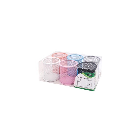 Bicchieri portapenne - rete metallica colorata - 8,5 x 10 cm - Lebez - conf. 6 pezzi