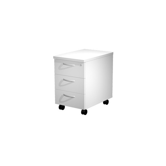 Cassettiera a 3 cassetti con chiusura centralizzata. Interno cassetti in metallo. Guide metalliche con fermo a fine corsa. Fornita montata. Dimensioni: L39,6 x P60 x H60 cm.