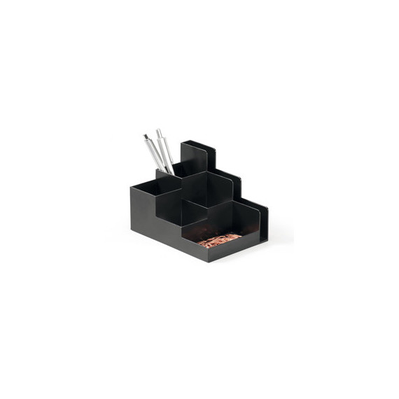 Desk organizer dal design solido e robusto. Dotato di 6 scomparti di diverse dimensioni di cui uno per le buste. Le diverse dimensioni degli scomparti sono adatti a contenere in modo pratico penne, forbici,fermagli, ecc, aiutando così nell'organizzazione dell'ufficio. Prodotta con materiali ecocompatibili secondo lo standard Blue Angel: min. 80% di polistirene riciclato.Dimensioni: 162 x 118 x 110 mm (LxPxH).
