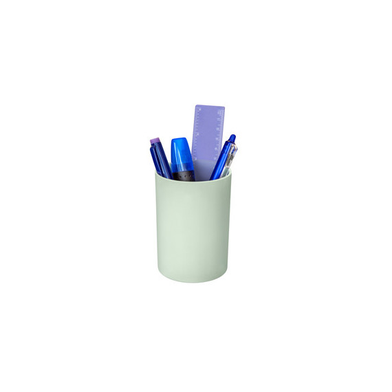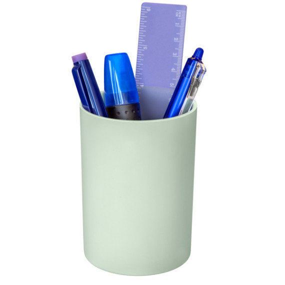 Forma semplice ed elegante, caratterizzata da un’elevata stabilità. Le pareti alte permettono di contenere in modo sicuro anche strumenti di grandi dimensioni come forbici e righelli. Ha una capacità di 24 penne o matite. Le dimensioni sono Ø 75 x H 105 mm. Realizzato in plastica PS resistente, composta al 94% da materiale riciclato e completamente riciclabile. Disponibile nei colori verde salvia, azzurro chiaro, nero, pesca, giallo chiaro e rosso.