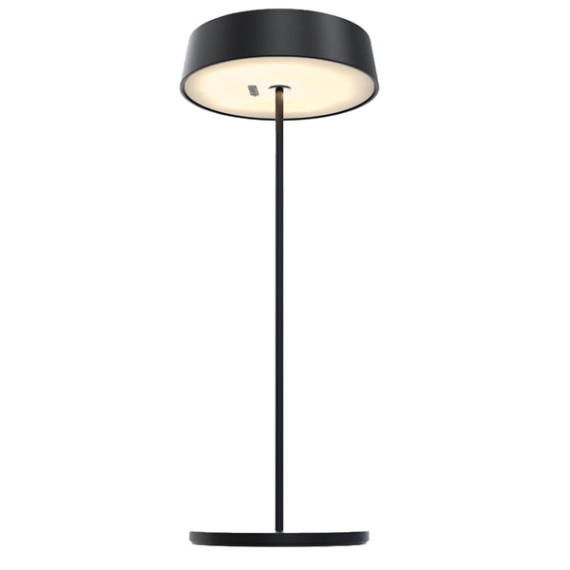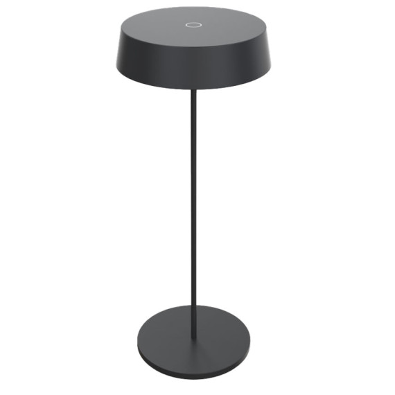 Lampada da tavolo a LED portatile e ricaricabile (2700W) ideale per il mondo della ristorazione per creare atmosfera e luce diffusa sui tavoli dei bistrot, nei ristoranti e negli hotel. Emissione luminosa modulare con tasto touch a pressione. Realizzata in alluminio pressofuso verniciato a polvere, con grado di protezione IP54 che consente l'utilizzo anche all'esterno. Base antiscivolo. Paralume superiore separabile con sgancio magnetico per agevolare la ricarica senza il relativo supporto. Batteria al litio con capacità 5000 mAh con una autonomia di 12 ore. Luminosità 200LM. Potenza 5,5W. Alimentazione con cavetto adattatore USB A –USB Type C in dotazione -DC 5V 2A. Dimensioni : H30cm x base 10cm. Paralume 13cm. Peso 800gr. Confezione piatta salvaspazio. Certificata CE.