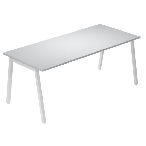 Scrivania lineare Easy - struttura bianca - gambe inclinate - 180 x 80 cm - grigio