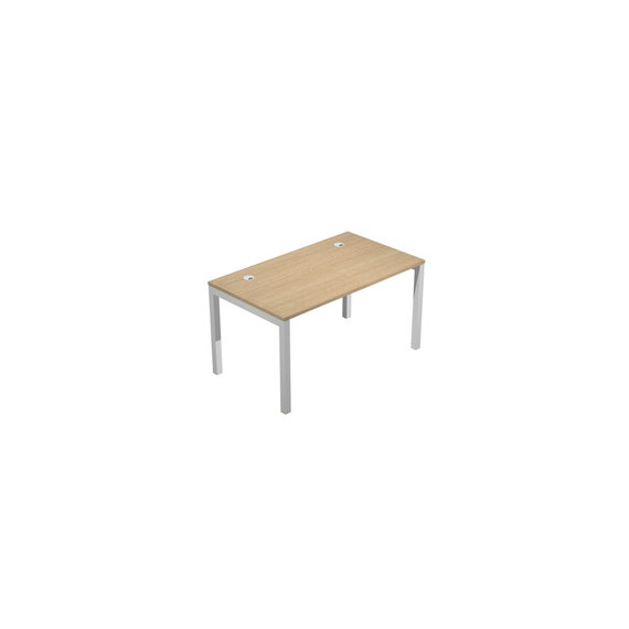Scrivania per postazione singola dimensioni: L140 x P80 x H74,6cm. Le scrivanie per postazione singola o multipla, sono in bilaminato nobilitato melaminico conforme alle norme UNI e EN classe E1, antigraffio ed antiriflesso, hanno sp. 25 mm con bordo sp. 2 mm in ABS resistente agli urti. Sono caratterizzate da robuste gambe a ponte in metallo a sezione quadrata (50 x 50 mm) verniciate a polveri epossidiche nel colore grigio alluminio, complete di piedini regolabili in altezza.
