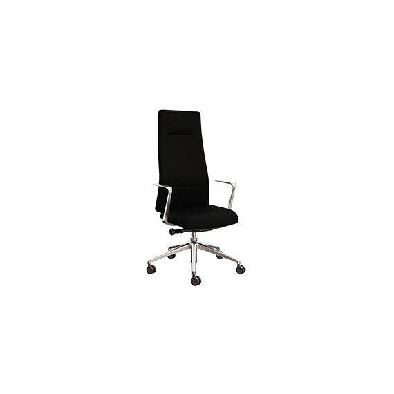 Poltrona direzionale imbottita. Elevazione a gas, contatto permanente, meccanismo synchro multiblock schienale con ritorno controllato, con 4 blocchi antishock, traslatore sedile. Gas certificato TUV. EN 1335 C 2020. Portata massima 140kg. Braccioli inclsi fissi in alluminio. Base alluminio. Dimensioni: Altezza totale: 121-133cm. Profondità: 70cm. Altezza seduta da terra: 45-56cm. Larghezza sedile: 53cm (62cm con braccioli). Profondità sedile: 46-54cm. Altezza schienale: 75cm. Larghezza schienale: 50cm. Altezza braccioli da terra: 64-75cm. Base Ø 70cm.