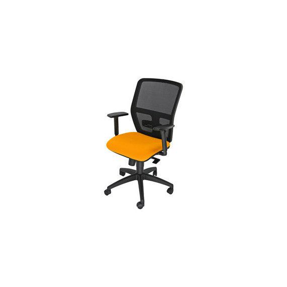 Seduta operativa girevole con elevazione a gas - meccanismo synchro con 4 blocchi anti shock - meccanismo a contatto permanente - schienale con supporto lombare regolabile. Completa di braccioli regolabili e base in nylon. Rivestimento in tessuto ECO-Eco 100% polipropilene. Altezza totale: 106-118cm. Profondità totale: 70cm. Altezza seduta: 42-54cm. Larghezza sedile: 51cm. Larghezza sedile con braccioli: 64cm. Altezza schienale: 61cm. Larghezza schienale: 51cm. Profondità sedile: 46cm. Base Ø 70cm.