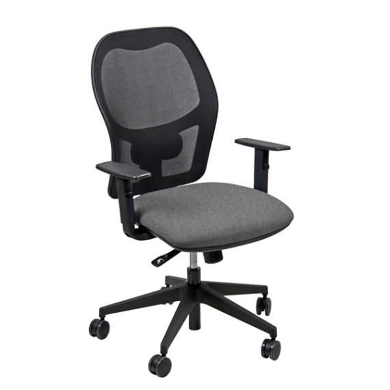 Seduta operativa girevole con elevazione a gas, meccanismo syncro, 4 blocchi anti shock e meccanismo a contatto permanente. Schienale con supporto lombare regolabile. Completa di braccioli regolabili. Rivestimento in tessuto FASHION - Chili 75% poliestere riciclato e certificazione di infiammabilità 1IM. Alt.tot: 102-113cm. Prof.tot: 68cm. Alt.schienale: 60cm. Largh.schienale: 48cm. Largh.sedile: 48cm. Prof.sedile: 46cm. Alt.sedile: 42-54cm.