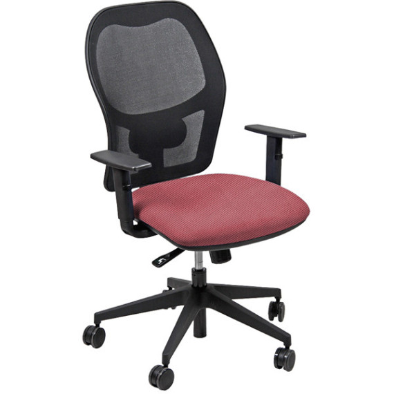 Seduta operativa girevole con elevazione a gas, meccanismo syncro, 4 blocchi anti shock e meccanismo a contatto permanente. Schienale con supporto lombare regolabile. Completa di braccioli regolabili. Rivestimento in tessuto SUPER - Target 100% poliestere idrorepellente antimacchia e reazione al fuoco classe 1. Alt.tot: 102-113cm. Prof.tot: 68cm. Alt.schienale: 60cm. Largh.schienale: 48cm. Largh.sedile: 48cm. Prof.sedile: 46cm. Alt.sedile: 42-54cm.