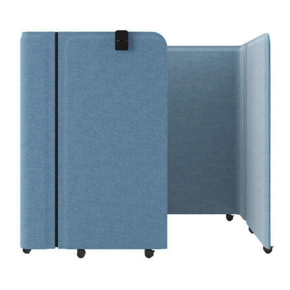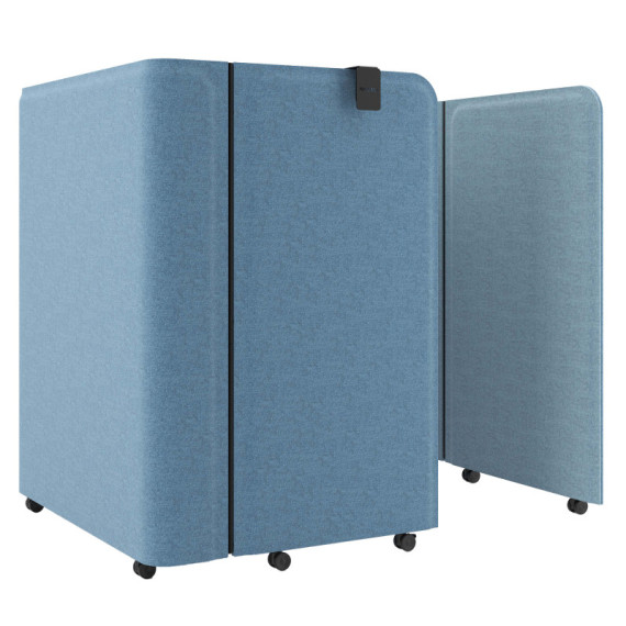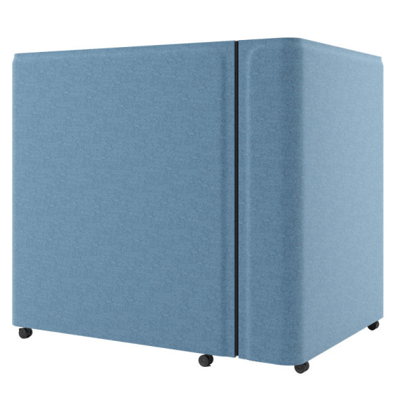 Ufficio compatto e mobile chiudibile. Dotato internamnete di una scrivania ribaltabile. Ideale per mobili ausiliari e postazioni di lavoro confortevoli. Imbottito in tessuto ecologico di colore azzurro. Ruote in nylon. Altezza: 140 cm. Larghezza: 158 cm.