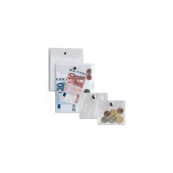 Buste in PVC trasparente, alto spessore, con patella e bottone di chiusura in metallo. Ideali per istruzioni, documenti, campioni, certificati di garanzia, monete, disegni, agende. Formato contenuto: 220x300mm.