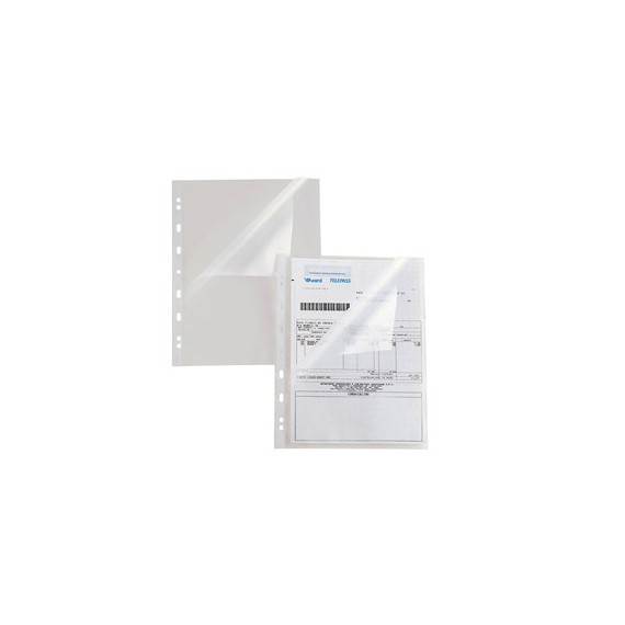 Buste con foratura universale rinforzata. Apertura laterale sul lato della foratura. In polipropilene a buccia d'arancia. Alto spessore.