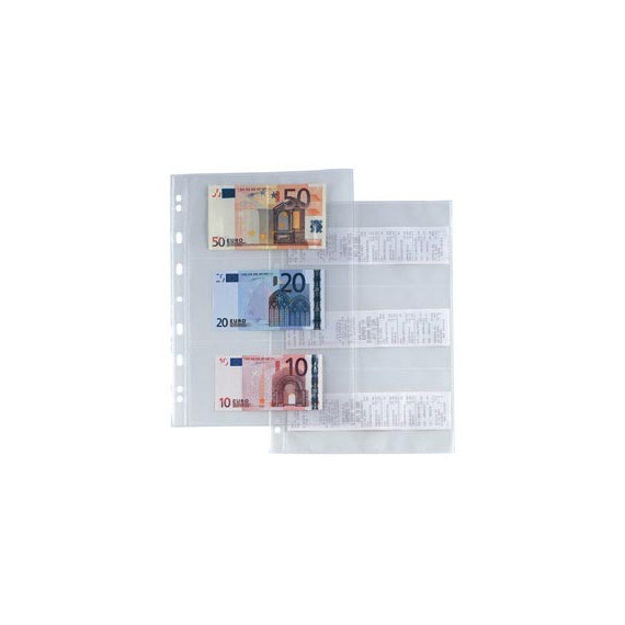 Buste porta banconote e scontrini fiscali con foratura universale in PP liscio. Dotate di 6 spazi (9,5x19cm) per la raccolta di scontrini fiscali, ricevute e banconote di vario taglio. Formato esterno 21x29,7cm.
