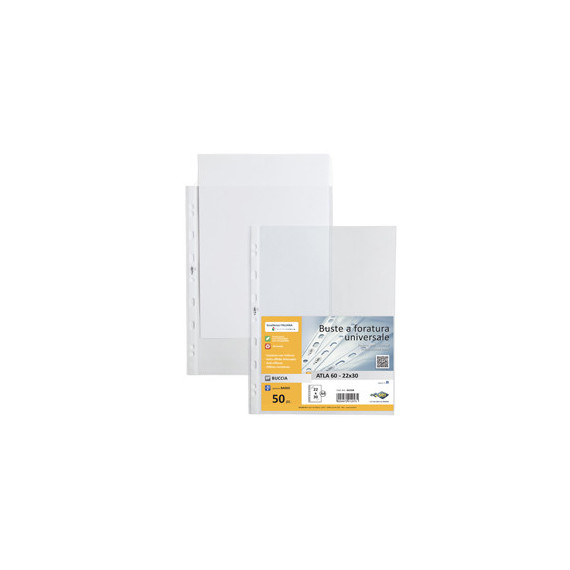 Buste forate Atla - leggera - buccia - 22 x 30 cm - trasparente - Sei Rota - conf. 50 pezzi