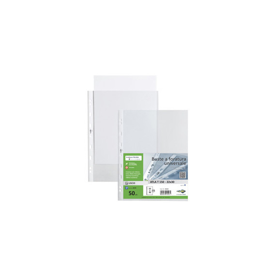 Buste forate in PP trasparente liscio con alto spessore. Foratura universale rinforzata. Ideali per archiviare qualsiasi tipo di documento. formato utile 22x30cm.