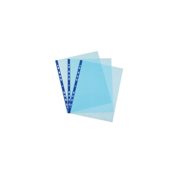 Busta forata in azzurro realizzata in polipropilene trasparente liscio, con foratura universale. Altissimo spessore e massima protezione dei documenti. Formato 22x30cm. Made in Italy