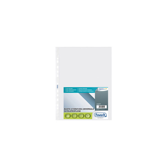 Buste forate Special PP - Superior - liscio - 23 x 33 cm - trasparente - Favorit - conf. 25 buste