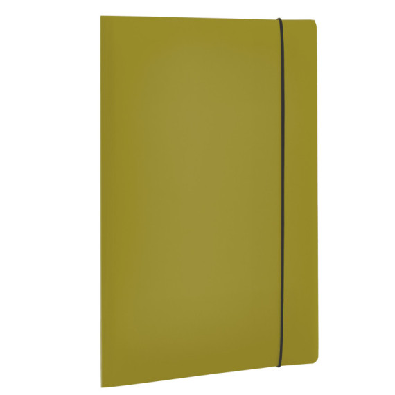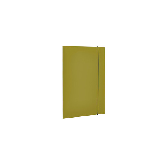 Cartellina a 3 lembi in polipropilene. Contenuto minimo di materiale riciclato post consumo pari al 30%. Confezionamento e imballo privi di plastica. Speaker label in carta 100% riciclata. Prodotto 100% riciclabile. Chiusura con elastico.