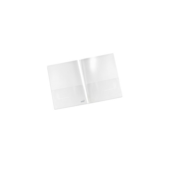 Cartelline due tasche interne orizzontali, formato interno A4. PP trasparente. Disponibili in 2 colori.