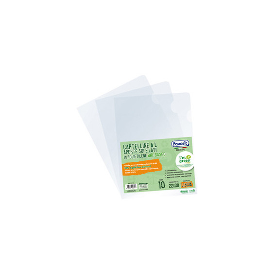 Cartellina a L BioBased - 22 x 30 cm - PE riciclato - liscio pesante - trasparente - Favorit - conf. 10 pezzi