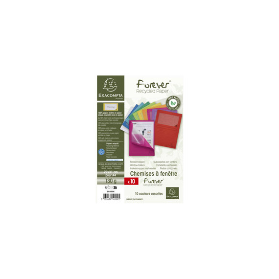 Cartellina a L con finestra Forever - 130g - A4 - colori assortiti - Exacompta - conf. 10 pezzi