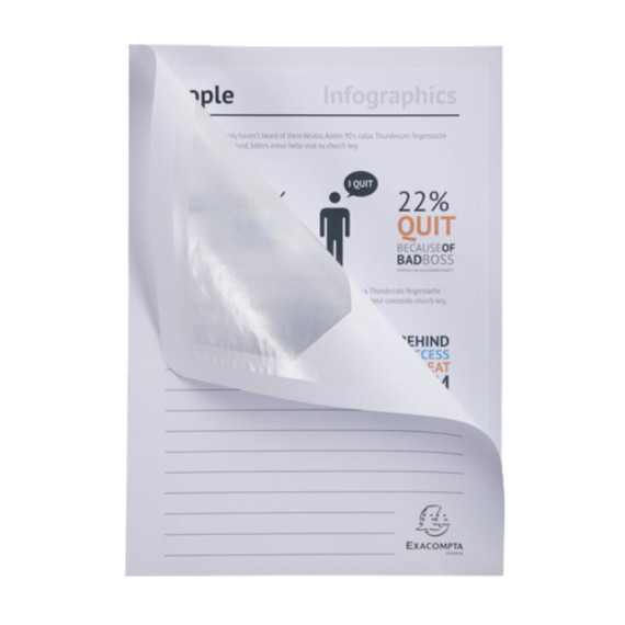Cartellina a L aperta su 2 lati con finestra in ricalco trasparente per raccogliere e conservare tutti i documenti.La finestra come la cartellina utilizzano zero plastica, il tutto è completamente riciclabile al 100%, un vero prodotto post-consumo.Cartoncino 100% riciclato da 130 g/mq, resistente ed ecologico.Certificazione Blue Angel, con una durata di conservazione di 50 anni. Produzione Made in Francia.Dimensioni cm 22x31 per formato A4.