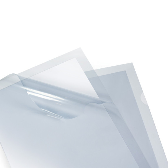 Cartelline in PP liscio trasparente, altissimo spessore, con apertura a L e una lunetta laterale per un efficace inserimento o estrazione dei fogli. Ideale per archiviare fotocopie, fax, documenti.