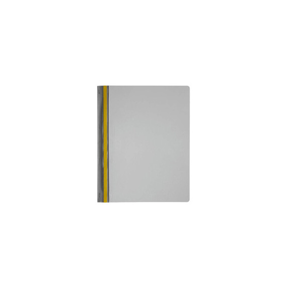 Cartelline grigie per rilegatura rapida mediante punti metallici. In PVC con copertina frontale trasparente e posteriore colorata. I punti vengono coperti dalla banda adesiva colorata posta su ambo i lati della cartellina. Dotate inoltre di asole per l'archiviazione in raccoglitori ad anelli. Capacità 1-30 fogli A4. Formato utile: 21x29,7cm.