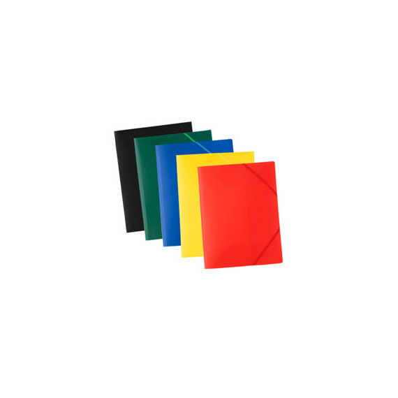 Cartellina a 3 lembi con elastico piatto 5mm in tinta, formato 24x32 cm in PP opaco da 400my, 100% riciclato e riciclabile.Caratteristiche di questo articolo:• Materiale: polipropilene riciclato• Colore: mix 4 colori (blu, rosso, verde, giallo)• Formato utile: 24x32cm• Chiusura: 3 lembi con elastico