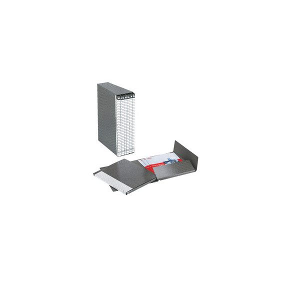 Gruppo Delso Line composto da 6 cartelle a 2 lembi (dorso 1,5 cm. dimensioni 25x32 cm) raggruppate in un'unica custodia e realizzate in robusto fibrone da 1,2 mm stampato e plastificato. La custodia, in fibrone da 0,9 mm stampato, è dotata di bande laterali metalliche di rinforzo che mantengono i bordi perfettamente diritti. Il rivestimento esterno plastificato rende tutta la superficie scrivibile. per cancellare le scritte è sufficiente utilizzare un batuffolo imbevuto di alcool denaturato o acetone. Il taglio obliquo della custodia permette infine una comoda estrazione.