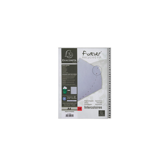 Intercalare numerico - 31 tasti - A4 - PP riciclato - grigio - Exacompta