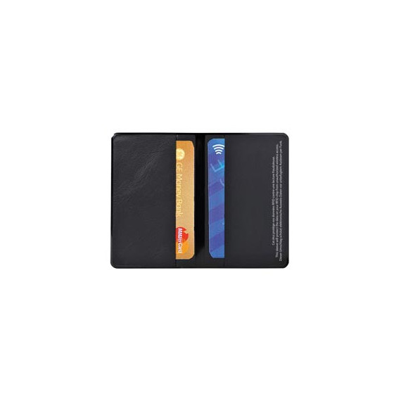 Portadocumenti con filtro che protegge i dati RFID da letture fraudolente non autorizzate bloccando la radiofrequenza che consente la lettura a distanza dei tag presenti su carte di credito, badge, documenti i identificazione ecc. HIDENTITY® Doppio a libro 95x60mm adatto per bancomat /carta di credito, è dotato di 2 tasche affacciate per contenere 2 card.