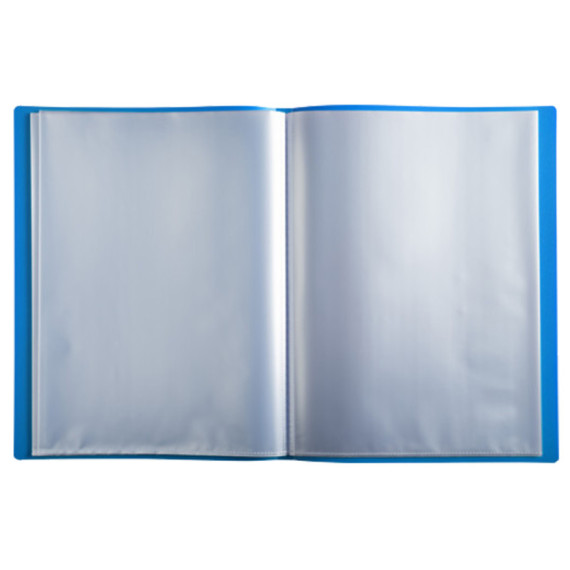 Portalistini Opak in polipropilene con 30 buste leggermente goffrate. Copertina colore azzurro. Formato 24x32cm.Copertina flessibile in polipropilene opaco, con effetto strutturato, resistente a macchie e graffi. L'oppacità della copertina garantisce la privacy del contenuto. 30 Buste interne finitura leggermente goffrata antiriflesso. Apertura sul lato superiore per inserire ed estrare più facilmente il contenuto. Capacità d'archiviazione fino a 60 fogli formato A4.Idoneo per creare listini personalizzati, menù e presentazioni per la scuola o l'ufficio ed evitare che il contenuto si rovina.
