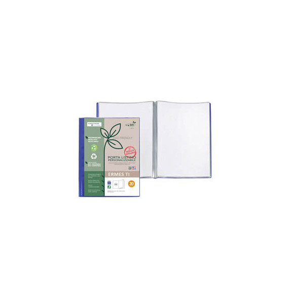 Portalistini personalizzabile Ermes TI - 22 x 30 cm - PP riciclato - 20 buste - blu - Sei Rota