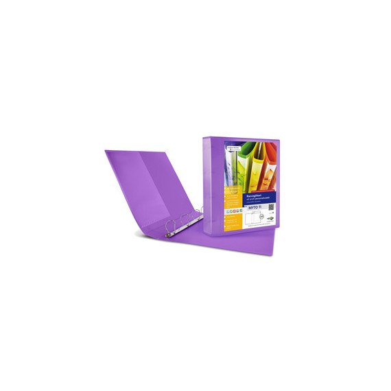 Raccoglitore personalizzabile in polipropilene colorato semitrasparente, con meccanismo a 4 anelli (a D). Dotato di tasche trasparenti sul 1° quadrante, sul dorso e all'interno. Inserimento facilitato della personalizzazione del dorso. Formato esterno: 260x320 mm. Formato contenuto: 220x300 mm (A4). Dorso: 25 mm. Diametro anelli: 17 mm. Colore lilla.