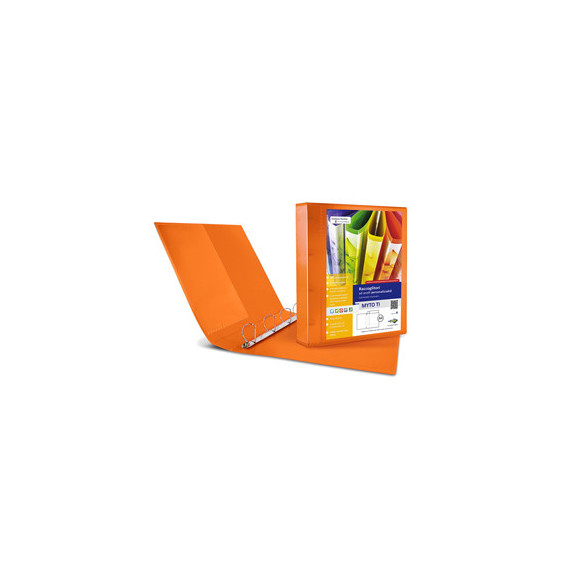 Raccoglitore personalizzabile in polipropilene colorato semitrasparente, con meccanismo a 4 anelli (a D). Dotato di tasche trasparenti sul 1° quadrante, sul dorso e all'interno. Inserimento facilitato della personalizzazione del dorso. Formato esterno: 275x320 mm. Formato contenuto: 220x300 mm (A4). Dorso: 40 mm. Diametro anelli: 30 mm. Colore arancione.