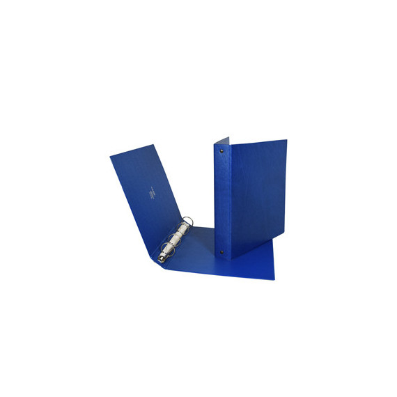 Raccoglitore in Colpan® (cartone rivestito in PVC) con meccanismo a 4 anelli tondi. Utili in ufficio, a scuola e a casa. Formato esterno: 200x225 mm. Formato contenuto: 150x210 mm (A5). Dorso: 30 mm. Diametro anelli: 25 mm. Colore blu.