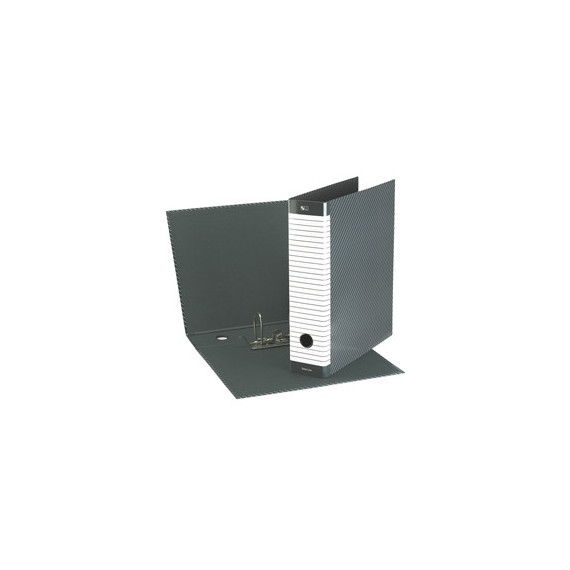 Registratore con ampio dorso riscrivibile per la massima personalizzazione. Robusta struttura in cartone (spessore 2 mm) rivestita in carta stampata e plastificata. Dotato di foro per l'estrazione e meccanismo a leva con 2 anelli. Resistente custodia da 0.9 mm in fibrone con bordi metallici rinforzati.Formato Commerciale (LxH) 23x30 cm. Dorso 8 cm. Colore grigio. Dimensioni 85x320x295 mm.Per cancellare le scritte pulire il dorso con una gomma per matita oppure con un batuffolo imbevuto di alcol denaturato o acetone.