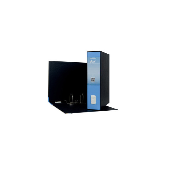 Registratore Dox® 2 dotato di linguella per l'estrazione a scomparsa 3 volte più resistente, caratterizzata da un design con presa più ergonomica, più agevole e arrotondata (l'area rientrante suggerisce il gesto per estrarre correttamente).Struttura in cartone rivestito con carta goffrata antimpronta e rifinito con paralati metallici alla base della plancia. Custodia in fibrone rivestito con carta nera goffrata trattata antimpronta, interno nero e parabordi verniciati. Meccanismo a leva in acciaio nichelato con pressino. Dorso in materiale plastico colorato e portaetichette trasparente con etichetta reversibile.Ogni dox possiede al suo interno un volantino con il codice QR da applicare sull'etichetta e 3 semplici indicazioni per scaricare la app dedicata su App Store e Google Play. Dox infatti si trasforma in registratore intelligente grazie a mydox app, la soluzione facile e immediata per archiviare e reperire documenti (tutte le informazioni sono disponibili sul sito www.myesseltedox.com).Formato protocollo (LxH) 23x34 cm. Dorso 8 cm. Colore azzurro. Dimensioni 85x352x288 mm.