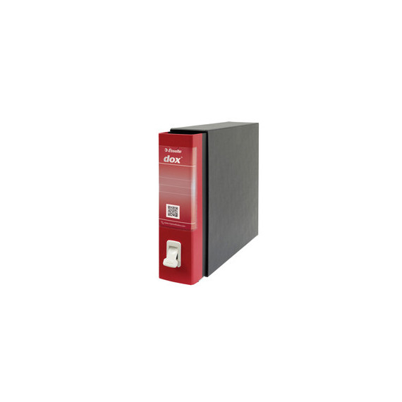 Registratore Dox® 2 dotato di linguella per l'estrazione a scomparsa 3 volte più resistente, caratterizzata da un design con presa più ergonomica, più agevole e arrotondata (l'area rientrante suggerisce il gesto per estrarre correttamente).Struttura in cartone rivestito con carta goffrata antimpronta e rifinito con paralati metallici alla base della plancia. Custodia in fibrone rivestito con carta nera goffrata trattata antimpronta, interno nero e parabordi verniciati. Meccanismo a leva in acciaio nichelato con pressino. Dorso in materiale plastico colorato e portaetichette trasparente con etichetta reversibile.Ogni dox possiede al suo interno un volantino con il codice QR da applicare sull'etichetta e 3 semplici indicazioni per scaricare la app dedicata su App Store e Google Play. Dox infatti si trasforma in registratore intelligente grazie a mydox app, la soluzione facile e immediata per archiviare e reperire documenti (tutte le informazioni sono disponibili sul sito www.myesseltedox.com).Formato protocollo (LxH) 23x34 cm. Dorso 8 cm. Colore rosso. Dimensioni 85x352x288 mm.