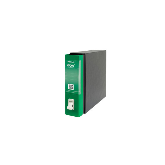 Registratore Dox® 2 dotato di linguella per l'estrazione a scomparsa 3 volte più resistente, caratterizzata da un design con presa più ergonomica, più agevole e arrotondata (l'area rientrante suggerisce il gesto per estrarre correttamente).Struttura in cartone rivestito con carta goffrata antimpronta e rifinito con paralati metallici alla base della plancia. Custodia in fibrone rivestito con carta nera goffrata trattata antimpronta, interno nero e parabordi verniciati. Meccanismo a leva in acciaio nichelato con pressino. Dorso in materiale plastico colorato e portaetichette trasparente con etichetta reversibile.Ogni dox possiede al suo interno un volantino con il codice QR da applicare sull'etichetta e 3 semplici indicazioni per scaricare la app dedicata su App Store e Google Play. Dox infatti si trasforma in registratore intelligente grazie a mydox app, la soluzione facile e immediata per archiviare e reperire documenti (tutte le informazioni sono disponibili sul sito www.myesseltedox.com).Formato protocollo (LxH) 23x34 cm. Dorso 8 cm. Colore verde. Dimensioni 85x352x288 mm.