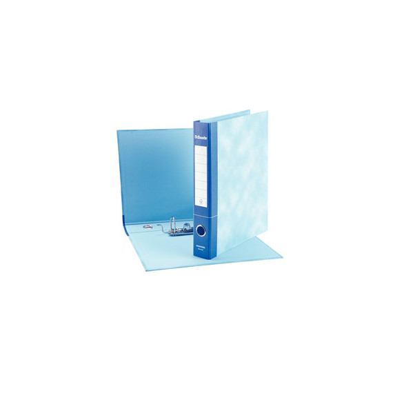 Registratore con meccanismo a leva rivestito in cartone blu (spessore 2 mm), con originale grafica nuvolata all'esterno ed effetto retinato di uguale tonalità all'interno. Foro per l'estrazione ed ampia etichetta stampata sul dorso per favorire la personalizzazione e rendere più veloce l’individuazione del documento ricercato. Resistente custodia in fibrone con bande metalliche di rinforzo che mantengono i bordi perfettamente diritti anche dopo un lungo utilizzo. Formato Protocollo (LxH) 23x33 cm. Dorso 5 cm. Dimensioni 55x350x295 mm.
