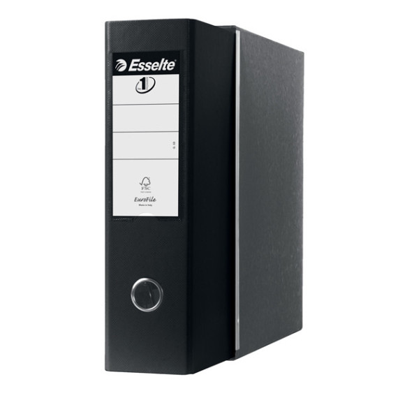 Registratore in robusto cartone da 2 mm, rivestito sia internamente che esternamente in polipropilene incollato su entrambi i lati. Dotato di ampia etichetta scrivibile su entrambi i lati e di portaetichetta saldato sul dorso.L'ottima qualità dei materiali impiegati, l’elevato livello di finitura e la lavorazione “case-made” lo rendono una garanzia in termini di resistenza, robustezza, funzionalità ed eleganza. Queste caratteristiche, oltre alle bande metalliche di rinforzo che mantengono i bordi della custodia perfettamente diritti anche dopo un lungo utilizzo, rendono Eurofile ideale per un uso intensivo.Formato Commerciale (LxH) 23x30 cm. Dorso 8 cm. Colore nero. Dimensioni 85x320x295 mm.