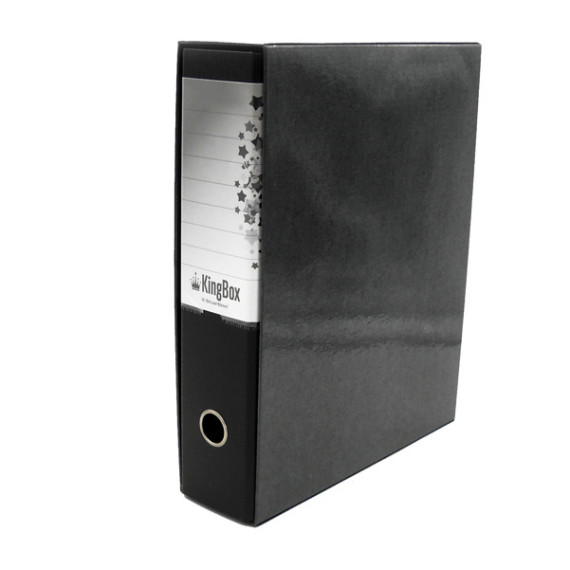 KingBox è un registratore indeformabile, lavabile e duraturo nel tempo, in cartone accoppiato da 2 mm di spessore, con rivestimento in resistente polipropilene goffrato. Dotato di propria custodia in cartone accoppiato nero, con bordi rinforzati, e di meccanismo a leva di alta qualità ancorato saldamente mediante 4 rivetti. Per agevolare la presa e facilitare l'archiviazione, KingBox presenta un anello di estrazione in acciaio nichelato (diametro 25 mm) ed una etichetta personalizzabile/scrivibile all'interno di una comoda busta termosaldata in PVC trasparente (170x100 mm), interamente fasciante il dorso.Il registratore KingBox è disponibile in 2 modelli formato protocollo (dorso 5 e dorso 8) e in un'ampia gamma di colori.Caratteristiche di questo articolo:• Codice: STL4020• Modello: KingBox Protocollo dorso 8• Colore: nero• Formato utile: (LxH 23x33cm)• Dorso: 8cm• Custodia: compresa• Portaetichetta con cartoncino: compreso• Meccanismo: a leva con pressino• Dimensioni esterne: 285x355x85mm• Confezione: 1pz