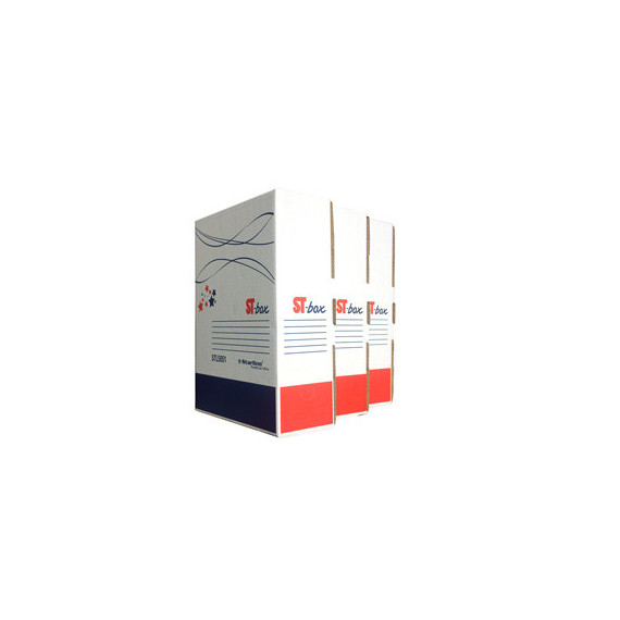 Scatole STARLINE archiviabili in 3 posizioni (lato corto, lato lungo verticale e lato lungo orizzontale) ognuna dotata di foro di estrazione. Disponibile nel formato legale. Caratteristiche di questo prodotto: • Codice: STL5052 • Tipo prodotto: Scatola archivio • Chiusura: lembo ribaltabile • Colore: bianco/blu • Formato (LxHxP) 37x26,5x9cm • Formato utile: 35,5x25,5x8,5cm • Materiale: cartone riciclato • Confezione: 25pz MADE IN ITALY